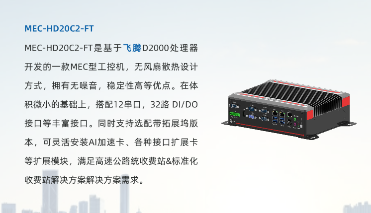 方案圍繞智慧化、集約化理念,車道端配置自助發卡/繳費設備,車道外設IP化設備,通過內置MEC-HD20C2-FT進行車道外設協議轉換,實現車道外設實時、集中監控,促進車道減員增效。