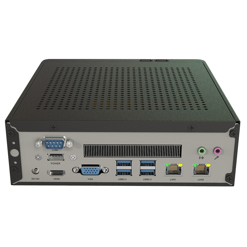 接口豐富:2* LAN, 6*USB,1*USB(電源開關),1*COM RS232, 1* HDMI,1*VGA,支持雙屏同步異步顯示,1*Audio,1*2.5寸硬盤位, 1*M.2(Key-M,2280,PCIE*4 NVME SSD),1*M.2(Key-E,2230,支持WiFi+BT)