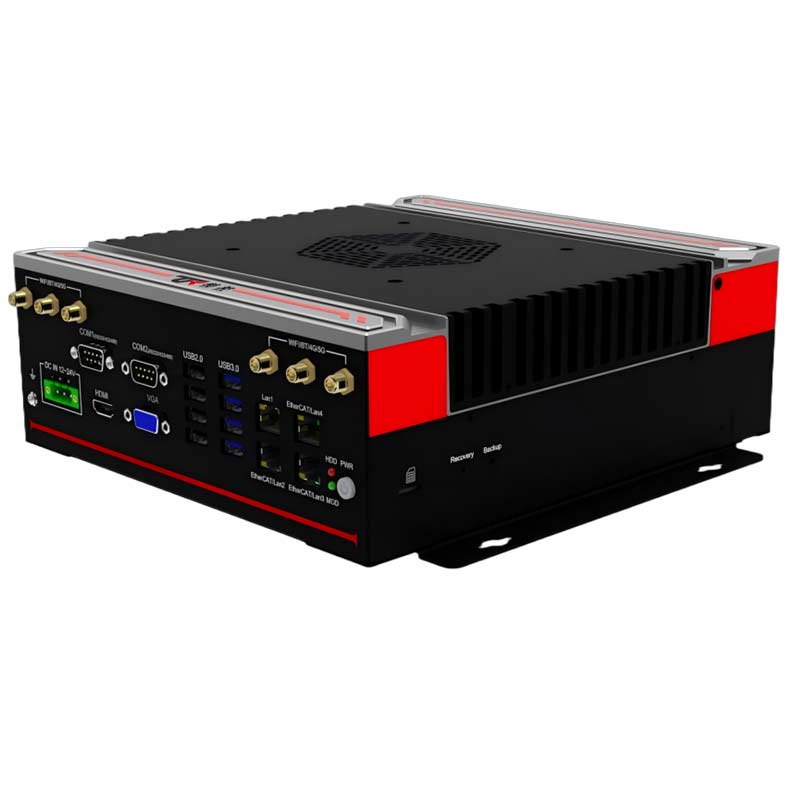 高性能 : 支持65W及以下6/7/8/9 代LGA1151 Intel Core i7/i5/i3 系列處理器 穩(wěn)定可靠 : 純工業(yè)設(shè)計(jì),強(qiáng)勁解熱熱管與純銅一體化的優(yōu)良散熱結(jié)構(gòu),全密封鋁合金箱體,大面積鋁鰭散熱,可實(shí)現(xiàn)橫向與豎向等多種放置的自然對(duì)流散熱,機(jī)箱可抗接觸式6KV強(qiáng)電磁干擾,DC12V-24V寬壓輸入接口豐富 : 4*LAN(Intel),6*COM,支持T-MOD模塊擴(kuò)展,8*GPIO(4*USB2.0/2*RJ45/2*CAN/12DI+12DO三選一擴(kuò)展),4*USB3.0+4*USB2.0 1*VGA,1*HDMI,1*DP,1*遠(yuǎn)程開關(guān),1*一鍵還原,1*一鍵備份,1*SIM槽, 1*LINE IN,1*LINE OUT,1*MIC,1*2.5寸硬盤位,1*M.2(KEY-M,2280,PCIEx4 支持SATA) , 1*M.2( KEY-B,3042/3052, PCIE+USB3.0支 持 4G/5G) , 1*MINI PCIE( 全 高 ,PCIE+USB2.0信號(hào),支持WiFi/BT)外觀設(shè)計(jì) : 鋁合金一體成型,結(jié)構(gòu)緊湊,MiNi小巧,工藝精細(xì),科技時(shí)尚